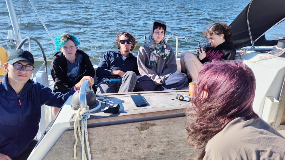 „No tak. Niektórzy z nas postanowili sobie przedłużyć wakacje i właśnie za chwilę wychodzimy na otwarte morze i płyniemy na zachód. Przez najbliższy tydzień będziemy Was zanudzać fotkami z rejsu. Pozdrowienia.”