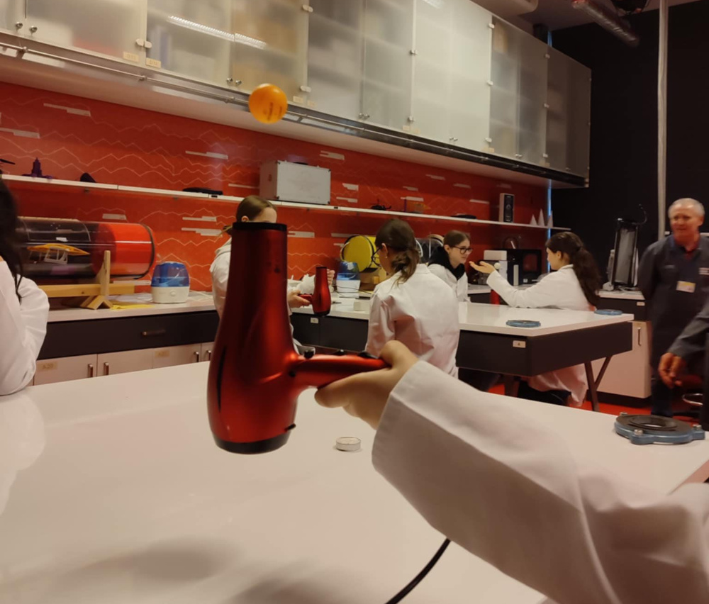 Uczniowie klas pierwszych na warsztatach z aerodynamiki.