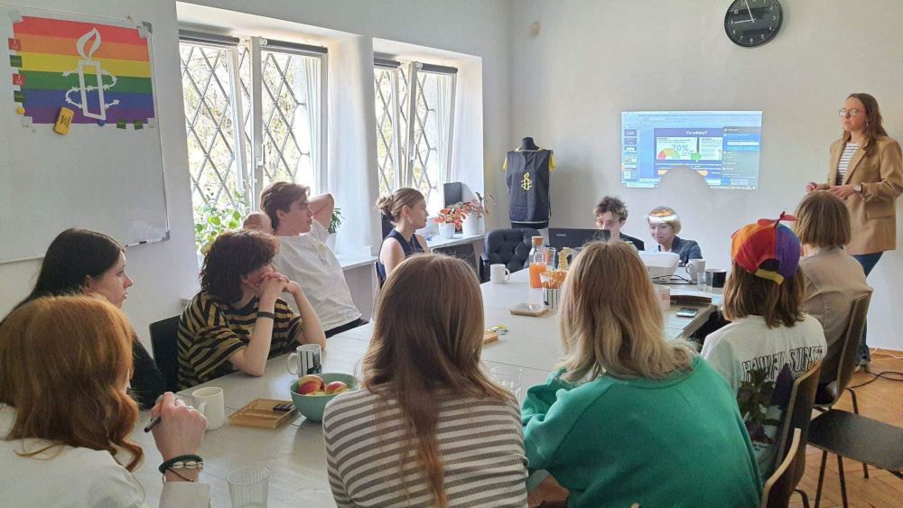 Uczniowie naszej szkoły na spotkaniu w siedzibie Amnesty.